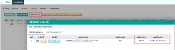 2.修改“家庭成员”“学习经历”“工作经历”“海外经历”从表(不支持修改“年度考核信息”)
